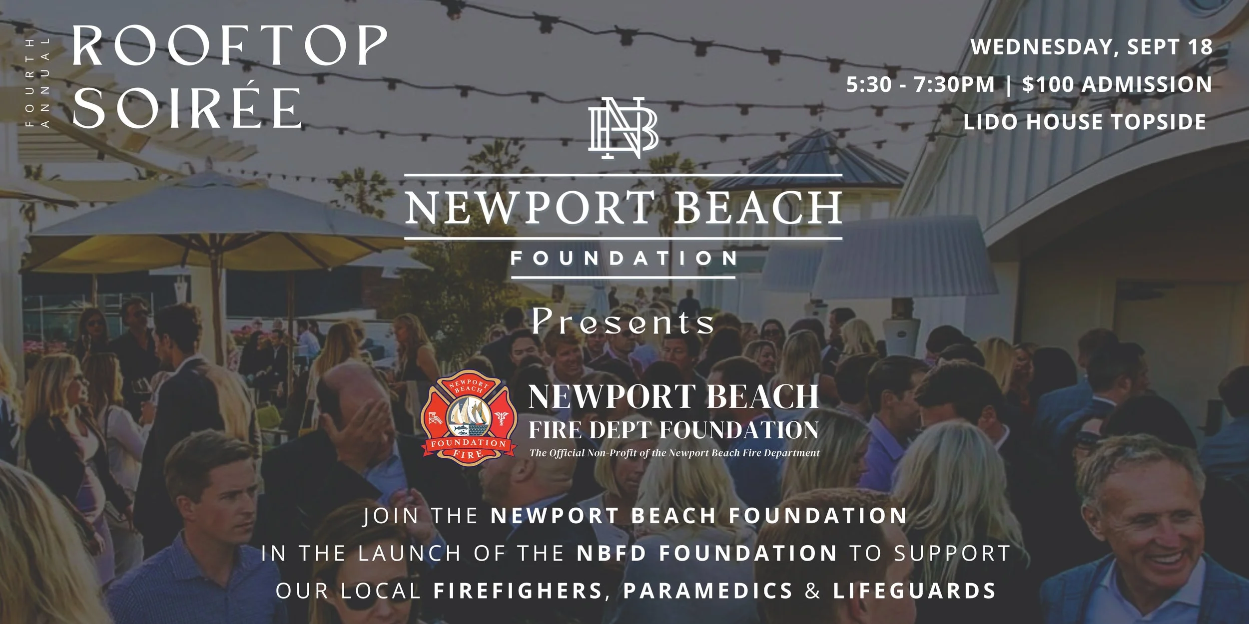 Celebrate the launch of the Newport Beach Fire Department Foundation at our 4th Annual Rooftop Soirée. Enjoy light bites, inspiring conversations, and the chance to support our local heroes—firefighters, paramedics, and lifeguards. Hosted by the Newport Beach Foundation, this event is a unique opportunity to make a meaningful impact in our community. Learn more and reserve your spot today!